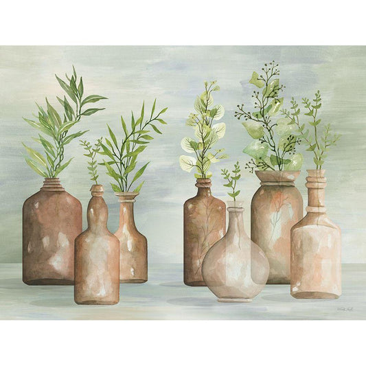 Greenery in Bottles I Gold Ornate Wood Framed Art Print with Double Matting by Jacobs, Cindy