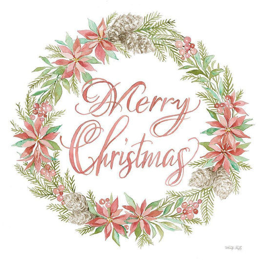 Merry Christmas Poinsettia Wreath Gold Ornate Wood Framed Art Print with Double Matting by Jacobs, Cindy
