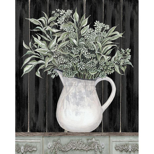 Sage Greenery in a Pitcher Gold Ornate Wood Framed Art Print with Double Matting by Jacobs, Cindy