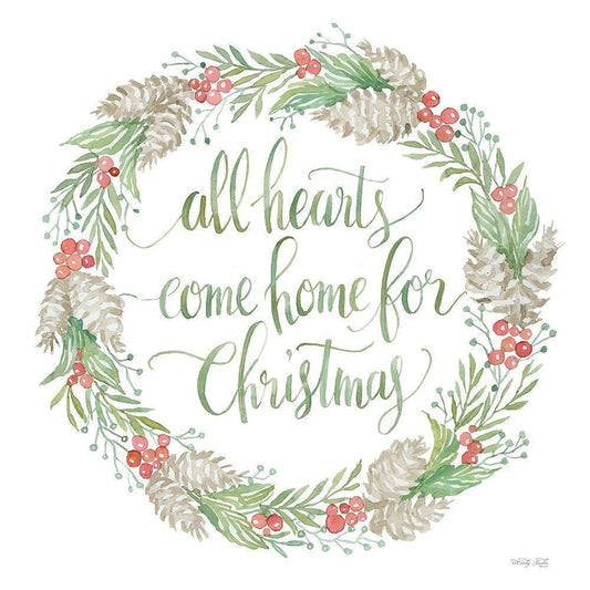 Come Home for Christmas Wreath Gold Ornate Wood Framed Art Print with Double Matting by Jacobs, Cindy