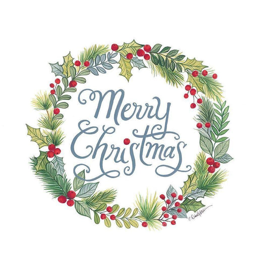Merry Christmas Wreath Gold Ornate Wood Framed Art Print with Double Matting by Kater, Diane