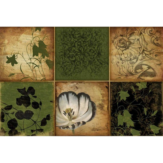 Green Florals Gold Ornate Wood Framed Art Print with Double Matting by Grey, Jace