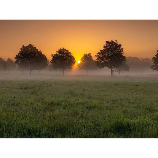 Misty sunrise in countryside-Berkshire-UK Gold Ornate Wood Framed Art Print with Double Matting by Frank, Assaf