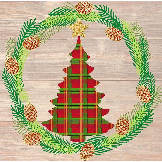 Plaid Christmas Tree Gold Ornate Wood Framed Art Print with Double Matting by Dos Santos, Bella