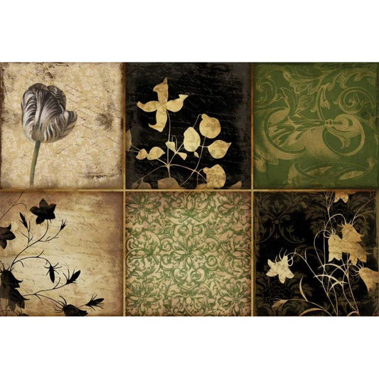 Green Florals Gold Ornate Wood Framed Art Print with Double Matting by Grey, Jace