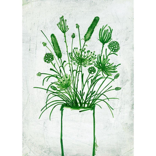 Gestural Brush, Green Gold Ornate Wood Framed Art Print with Double Matting by Gold, Lora