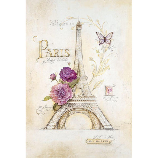 Eiffel Tower Roses Gold Ornate Wood Framed Art Print with Double Matting by Staehling, Angel