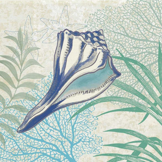 Oceana Indigo Shells II Gold Ornate Wood Framed Art Print with Double Matting by Gladding, Pamela