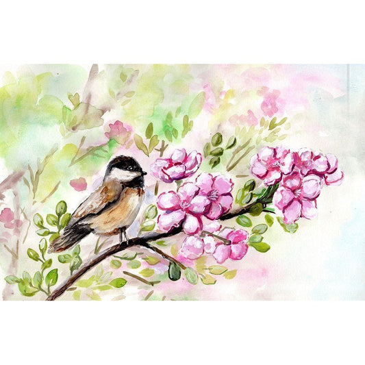Spring Chickadee and Apple Blossoms Gold Ornate Wood Framed Art Print with Double Matting by Chapman, Marcy