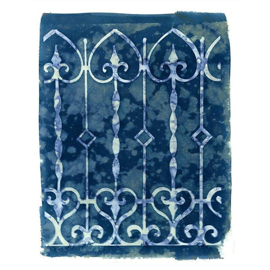 Wrought Iron Cyanotype III Gold Ornate Wood Framed Art Print with Double Matting by Green, Nancy