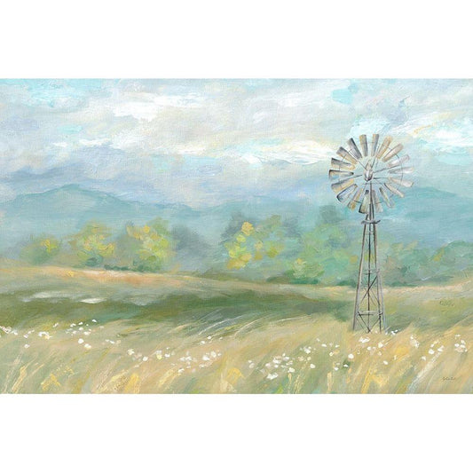 Country Meadow Windmill Landscape Gold Ornate Wood Framed Art Print with Double Matting by Coulter, Cynthia