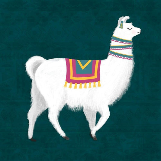 Lovely Llama Jewel Tones I -Teal Gold Ornate Wood Framed Art Print with Double Matting by Noonday Design