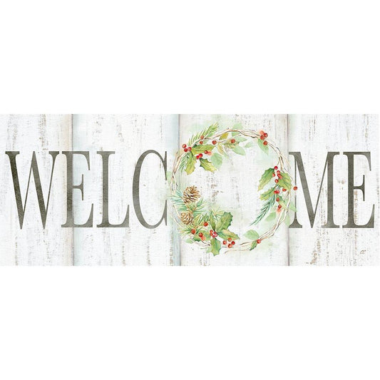 Holiday Wreath Welcome Sign Gold Ornate Wood Framed Art Print with Double Matting by Coulter, Cynthia