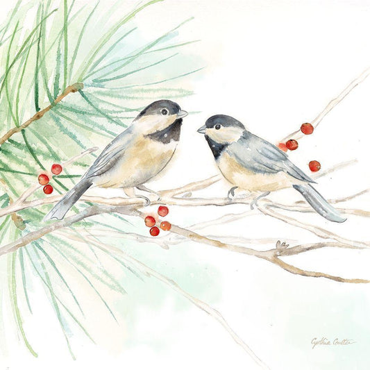 Winter Birds II Chickadees Gold Ornate Wood Framed Art Print with Double Matting by Coulter, Cynthia