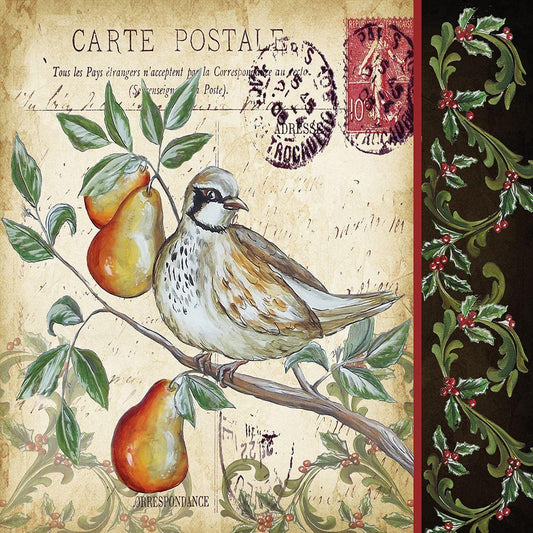 Christmas Bird Postcard IV Gold Ornate Wood Framed Art Print with Double Matting by Tre Sorelle Studios