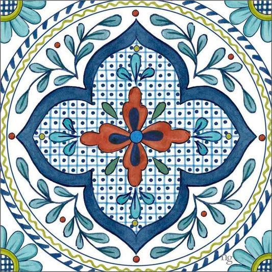 Talavera Azul I Gold Ornate Wood Framed Art Print with Double Matting by Nancy Green Design