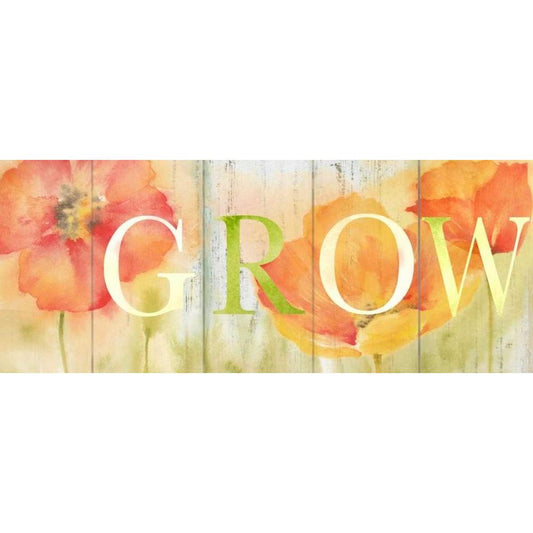 Watercolor Poppy Meadow Grow Sign Gold Ornate Wood Framed Art Print with Double Matting by Coulter, Cynthia
