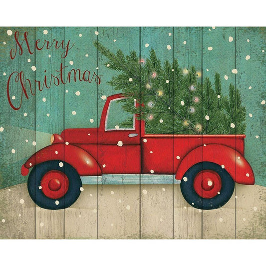 Christmas Truck Gold Ornate Wood Framed Art Print with Double Matting by P.S. Art