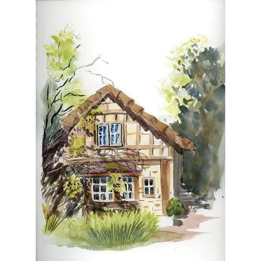 Cottage Gold Ornate Wood Framed Art Print with Double Matting by Shefranov, Olga
