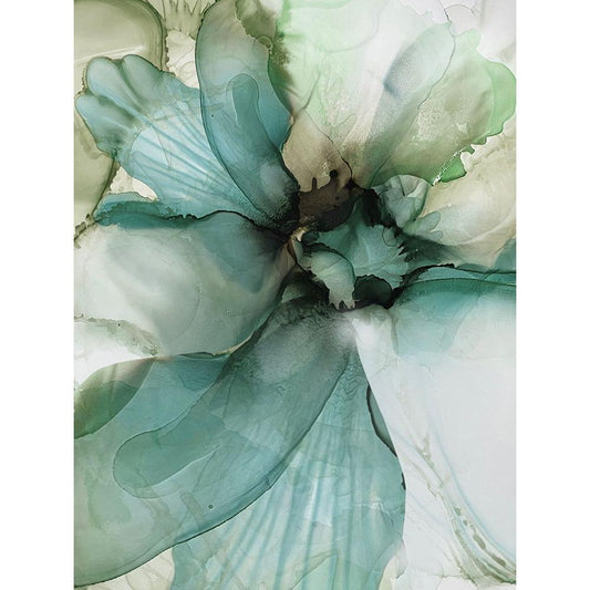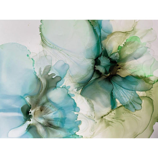 Sage And Teal Flowers 1 Gold Ornate Wood Framed Art Print with Double Matting by Debs, Emma Catherine