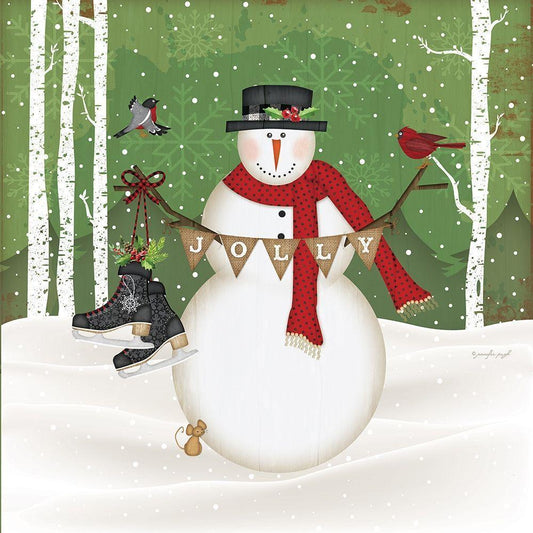 Jolly Snowman Gold Ornate Wood Framed Art Print with Double Matting by Pugh, Jennifer