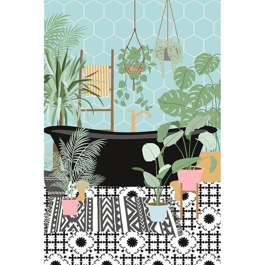 Tiled Bathroom Gold Ornate Wood Framed Art Print with Double Matting by JJ Design
