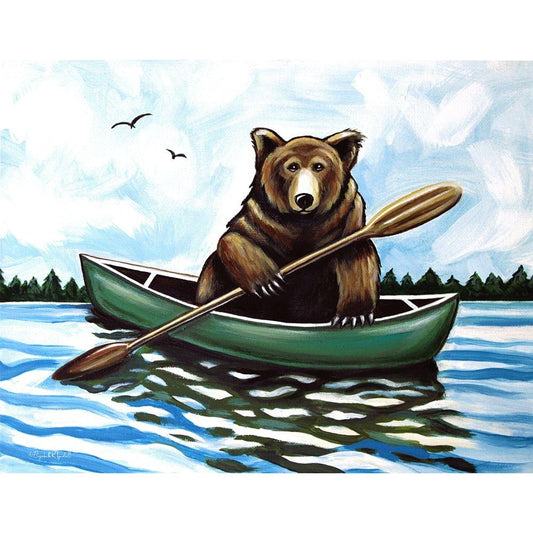 Bear in a Canoe II Gold Ornate Wood Framed Art Print with Double Matting by Tyndall, Elizabeth