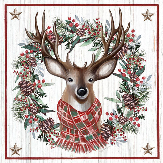 Christmas Deer Gold Ornate Wood Framed Art Print with Double Matting by Tyndall, Elizabeth