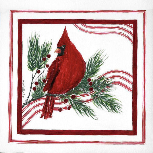 Christmas Cardinal II Gold Ornate Wood Framed Art Print with Double Matting by Shamp, Cindy