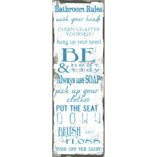 Bathroom Rules White-Blue Gold Ornate Wood Framed Art Print with Double Matting by Greene, Taylor