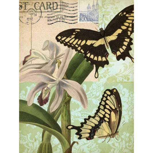 Papillon Melange II Gold Ornate Wood Framed Art Print with Double Matting by Vision Studio