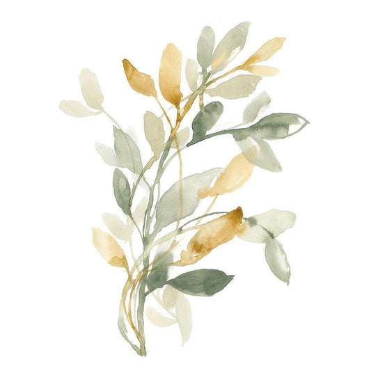 Sage and Sienna Leaves I Gold Ornate Wood Framed Art Print with Double Matting by Goldberger, Jennifer