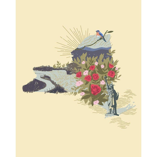 Illustrated State-New York Gold Ornate Wood Framed Art Print with Double Matting by Green, Jacob