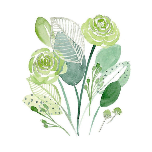 Green Portrait I Gold Ornate Wood Framed Art Print with Double Matting by Wang, Melissa