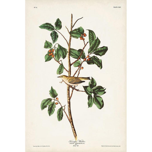 Pl. 154 Tennessee Warbler Gold Ornate Wood Framed Art Print with Double Matting by Audubon, John James