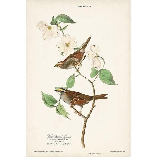 Pl.8 White-throated Sparrow Gold Ornate Wood Framed Art Print with Double Matting by Audubon, John James