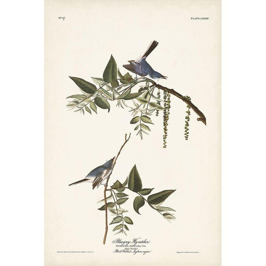 Pl. 84 Bluegrey Flycatcher Gold Ornate Wood Framed Art Print with Double Matting by Audubon, John James
