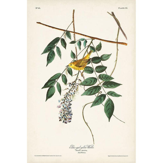 Pl. 95 Blue-eyed Yellow Warbler Gold Ornate Wood Framed Art Print with Double Matting by Audubon, John James