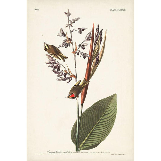 Pl. 183 American Golden-crested Wren Gold Ornate Wood Framed Art Print with Double Matting by Audubon, John James