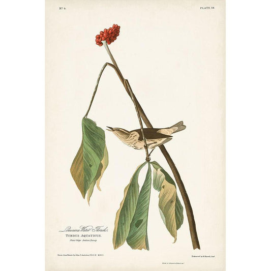 Pl. 19 Louisiana Water Thrush Gold Ornate Wood Framed Art Print with Double Matting by Audubon, John James