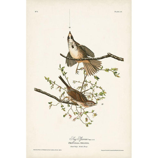 Pl. 25 Song Sparrow Gold Ornate Wood Framed Art Print with Double Matting by Audubon, John James