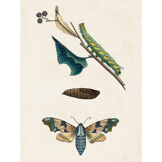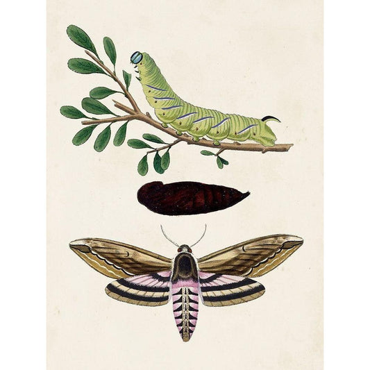 Caterpillar and Moth I Gold Ornate Wood Framed Art Print with Double Matting by Unknown