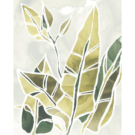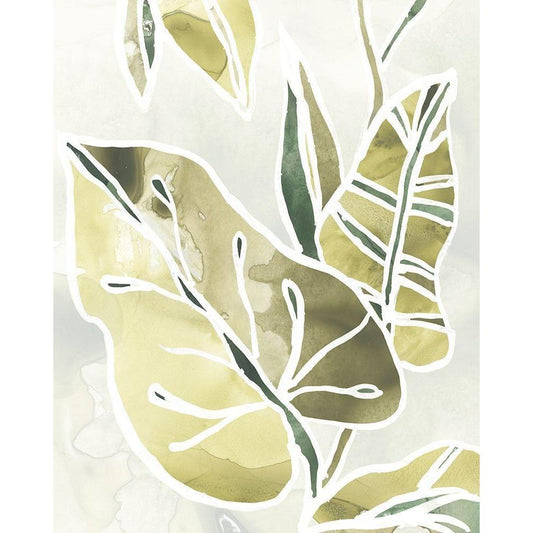Batik Leaves I Gold Ornate Wood Framed Art Print with Double Matting by Vess, June Erica