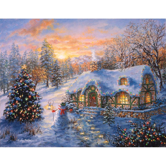Christmas Cottage Gold Ornate Wood Framed Art Print with Double Matting by Boehme, Nicky