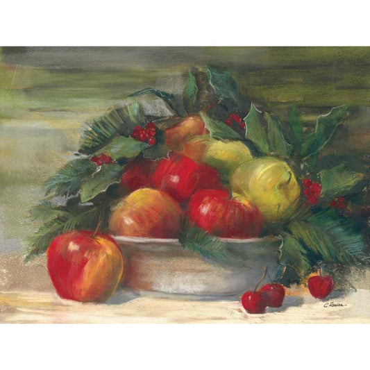Apples and Holly Gold Ornate Wood Framed Art Print with Double Matting by Rowan, Carol