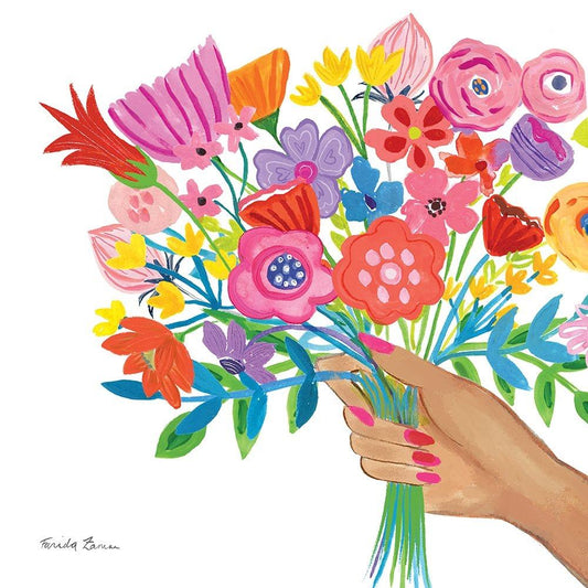 Bunch of Flowers Gold Ornate Wood Framed Art Print with Double Matting by Zaman, Farida