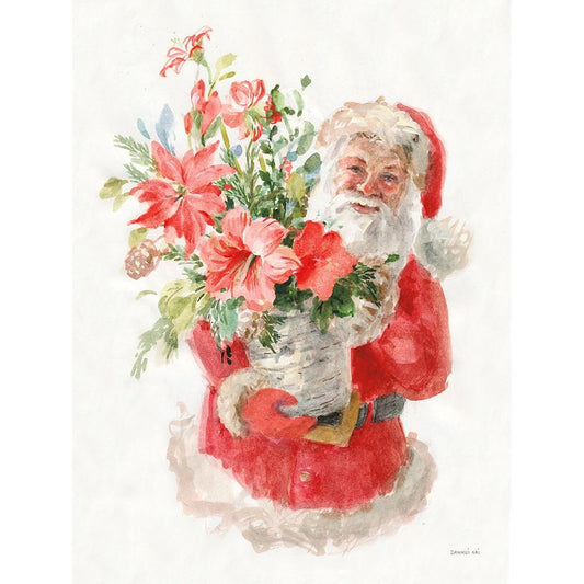 Floral Santa Gold Ornate Wood Framed Art Print with Double Matting by Nai, Danhui