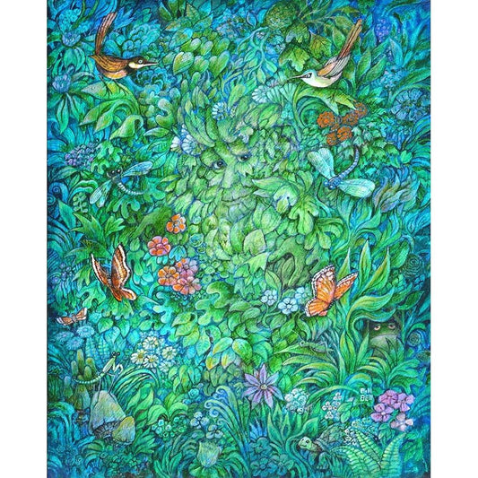 The Green Man Gold Ornate Wood Framed Art Print with Double Matting by Bell, Bill