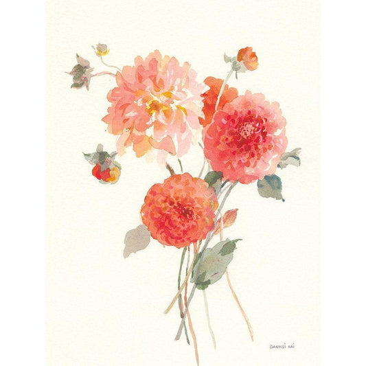 Summer Dahlias II Gold Ornate Wood Framed Art Print with Double Matting by Nai, Danhui