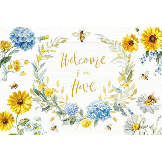 Bees and Blooms_Sweet As Honey Wreath Gold Ornate Wood Framed Art Print with Double Matting by Nai, Danhui